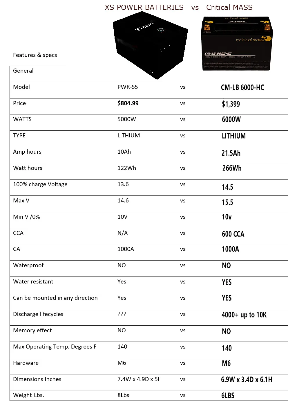Critical Mass High-Capacity Car Audio Lithium Power Cell Battery